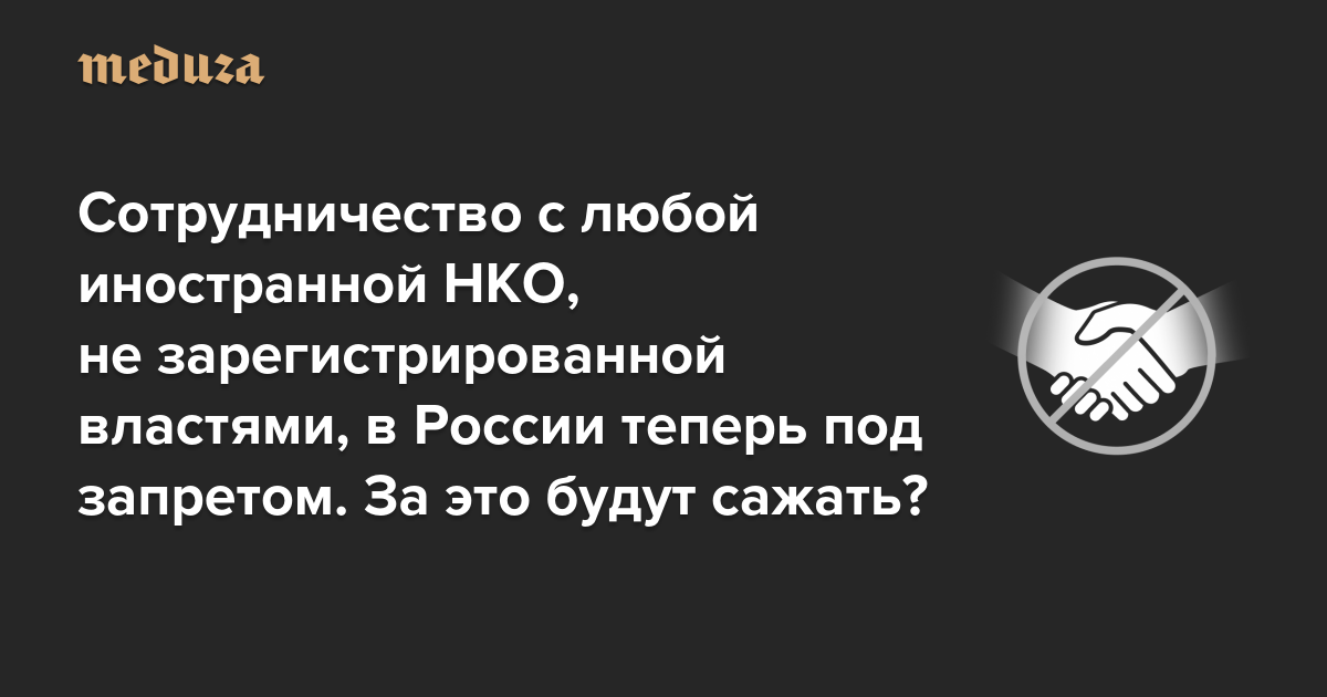 Сотрудничество с любой иностранной НКО, не зарегистрированной властями (даже если она не объявлена «нежелательной»), в России теперь под запретом За это будут сажать?