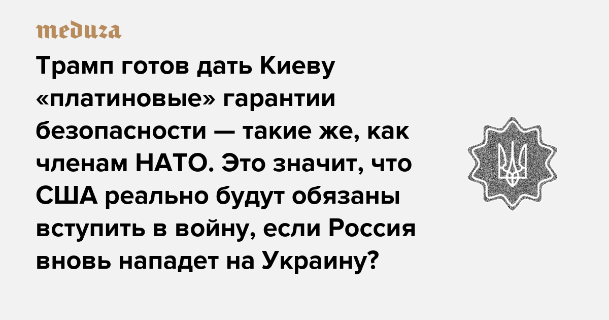 Трамп готов дать Киеву «платиновые» гарантии безопасности — такие же, как членам НАТО. Это значит, что США реально будут обязаны вступить в войну, если Россия вновь нападет на Украину?