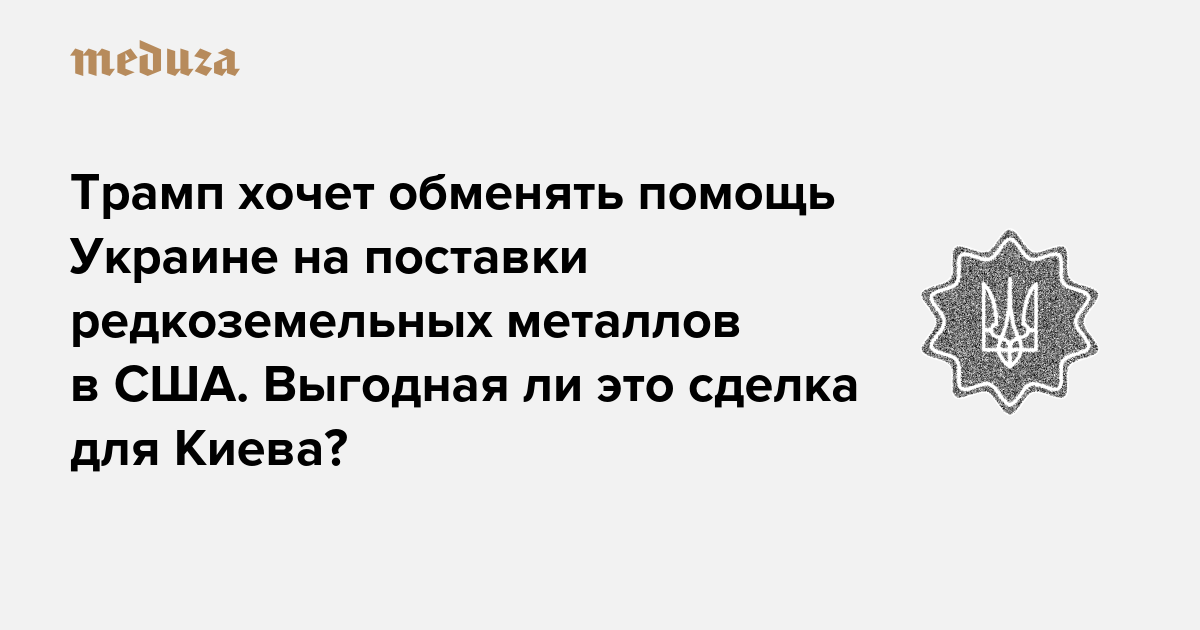 Для Владимира Зеленского предложение Трампа — это тоже маленькая победа. Во-первых, пусть в форме «сделки», но он получил от нового американского президента четкое согласие на продолжение военной и финансовой помощи. Во-вторых, Трамп, по сути, согласился с одним из пунктов «плана победы» Зеленского. Украинский президент сам подтвердил, что еще в сентябре 2024-го на встрече с республиканцем говорил о том, что Киев открыт «к тому, что все это (то есть редкоземельные металлы и другие полезные ископаемые, — прим. „Медузы“) может быть разработано с партнерами, которые помогают защитить нашу землю и толкают врага назад своим оружием, присутствием и санкциями».