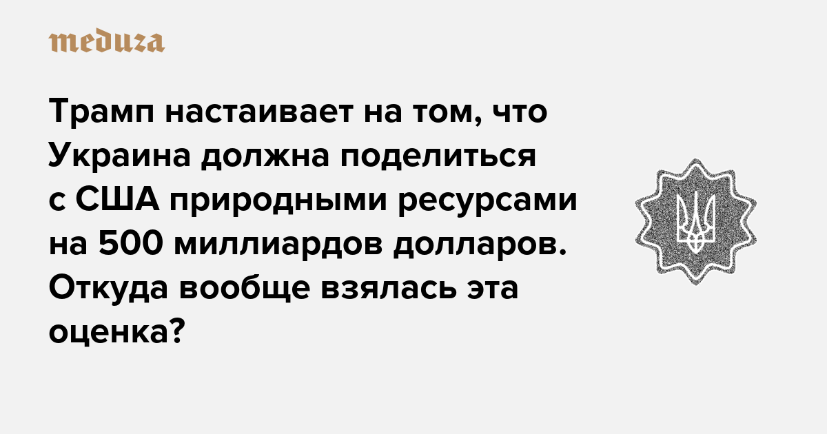 Трамп настаивает на том, что Украина должна поделиться с США природными ресурсами на 500 миллиардов долларов. Откуда вообще взялась эта оценка?