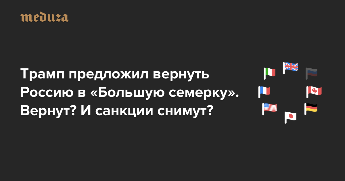 Трамп предложил вернуть Россию в «Большую семерку». Вернут? И санкции снимут?