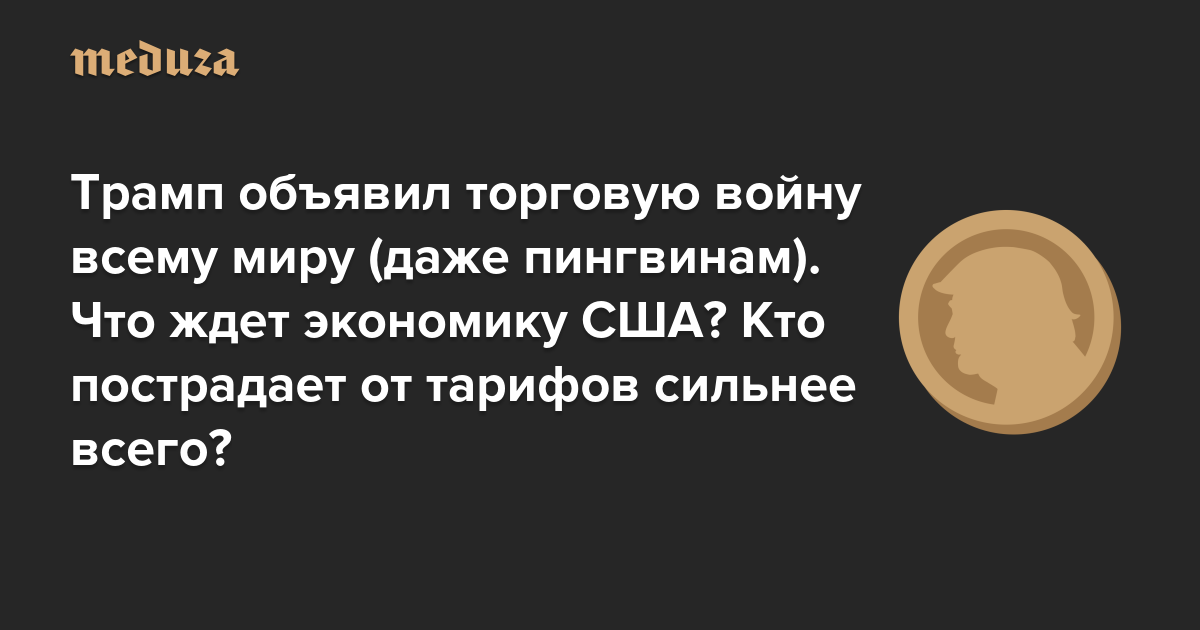 Трамп решил «освободить» Америку — и объявил торговую войну всему миру (даже пингвинам). Что ждет экономику США? Кто пострадает от тарифов сильнее всего? И за счет чего пошлин удалось избежать России?