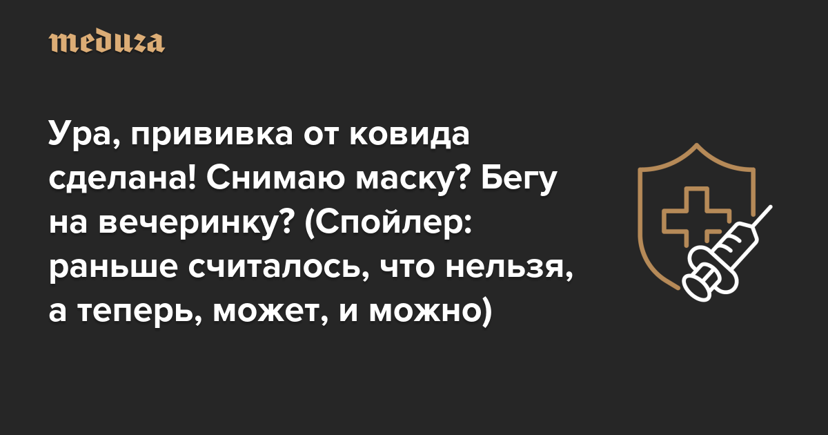 Ура, прививка от ковида сделана! Что теперь? Снимаю маску? Бегу на вечеринку? Еду к бабушке? (Спойлер: раньше считалось, что нельзя, а теперь, может, и можно)