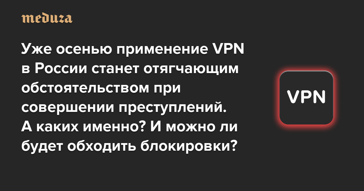 Уже осенью применение VPN в России станет отягчающим обстоятельством при совершении преступлений. А каких именно? И можно ли вообще будет обходить блокировки?