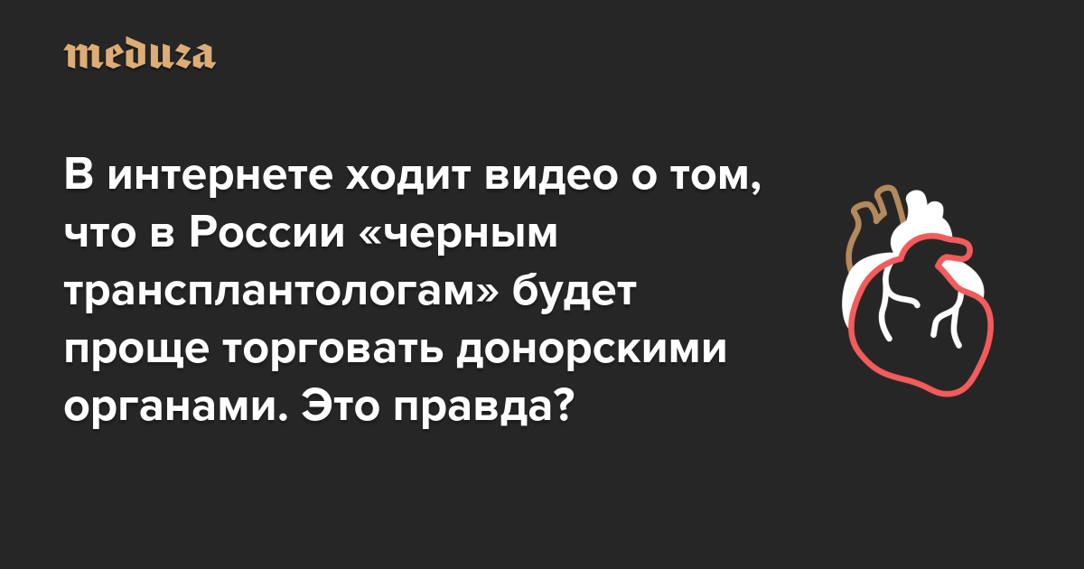 В интернете ходит видео о том, что по новому закону в России будет проще торговать донорскими органами. Это правда? Черные трансплантологи существуют?