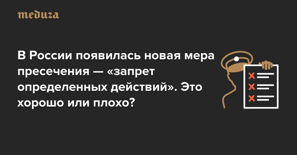 В России появилась новая мера пресечения — «запрет определенных действий». Это хорошо или плохо?