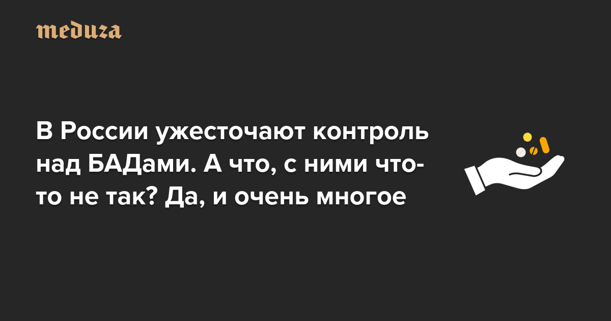 Рынок БАДов — огромный и плохо контролируемый. По закону в России можно продавать только те БАДы, которые зарегистрированы. Но на маркетплейсах продавались и продаются БАДы, которые не проходили такую процедуру. То есть их состав вообще никак не контролировался и не контролируется.
