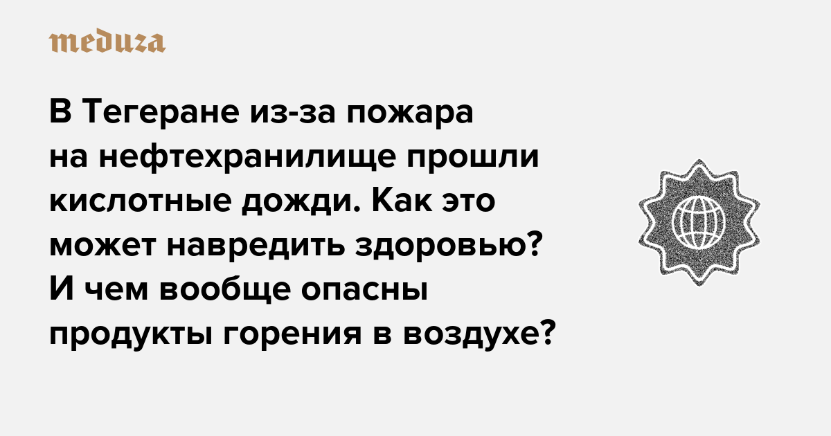 В Тегеране из-за пожара на нефтехранилище прошли кислотные дожди. Как это может навредить здоровью? И чем вообще опасны продукты горения в воздухе? Коротко о последствиях удара Израиля по столице Ирана