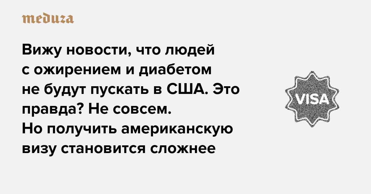 Вижу новости, что людей с ожирением, диабетом и болезнями сердца не будут пускать в США. Это вообще правда? Не совсем. Но получить американскую визу становится сложнее