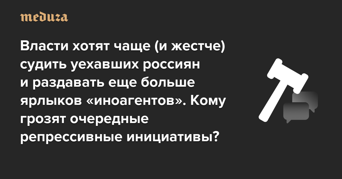 Власти хотят чаще (и жестче) судить уехавших россиян и раздавать еще больше ярлыков «иноагентов». Кому грозят очередные репрессивные инициативы депутатов? Неутешительный спойлер: кому угодно