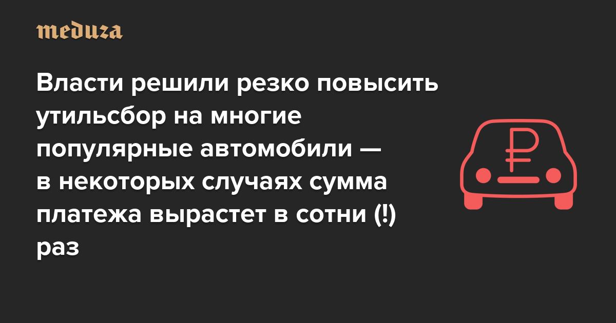 Власти решили резко повысить утильсбор на многие популярные автомобили — в некоторых случаях сумма платежа вырастет в сотни (!) раз. Это уже возмутило многих водителей Зачем нужна непопулярная мера? И какие машины подорожают сильнее всего?
