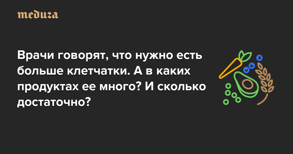 Врачи говорят, что нужно есть больше клетчатки. А в каких продуктах ее много? И сколько достаточно? Рассказываем, как правильно выстроить свой рацион
