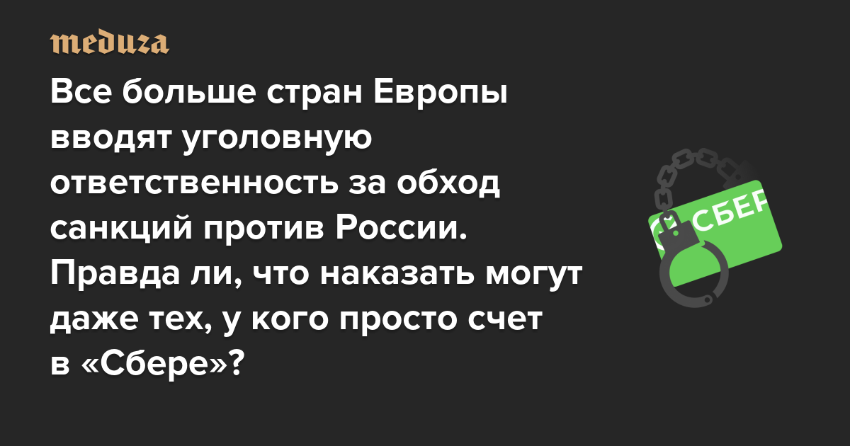 Все больше стран Европы вводят уголовную ответственность за обход санкций против России. Правда ли, что наказать могут даже тех, у кого просто счет в «Сбере»?