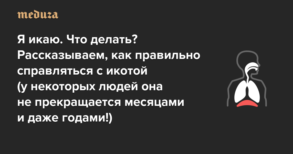 Мы могли бы здесь перечислить и не проверенные в исследованиях способы избавления от икоты, которые можно встретить в журналистских и даже медицинских статьях, но вы все это наверняка и так знаете. И, вероятно, у вас есть способы, которые отлично работают (или работают у людей, которых вы знаете). Поделитесь с нами через эту форму — мы опубликуем полный список здесь же через неделю.