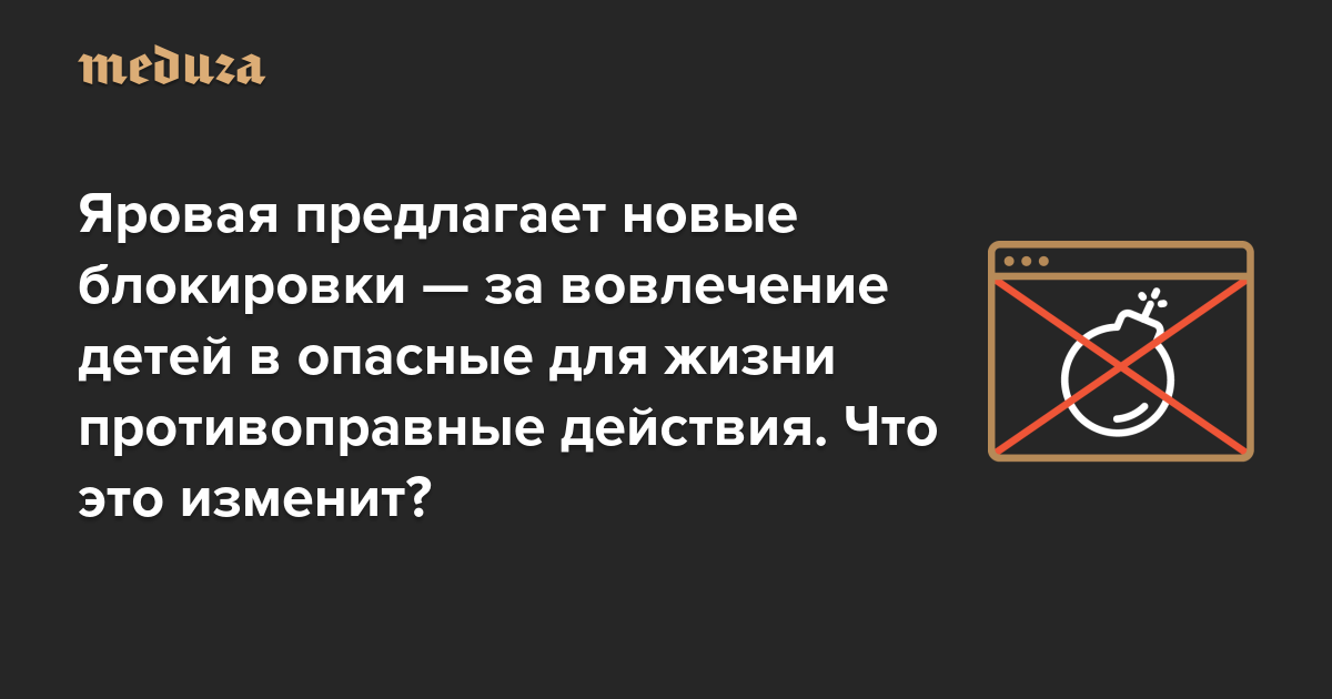 Яровая предлагает новые блокировки — за вовлечение детей в опасные для жизни противоправные действия. Что это изменит?