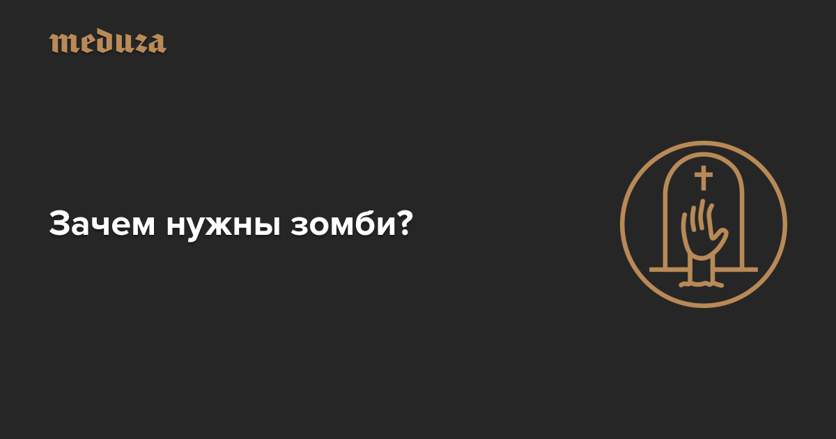 Если искать научные публикации по слову zombie, система выдаст огромное количество статей из самых разных областей науки — от эпидемиологии до экономики, от психиатрии до политологии. Есть две основных причины этого явления, они отчасти друг с другом пересекаются. Первая очень простая — статью со словом «зомби» скорее заметят. Кроме того, зомби обладает набором узнаваемых свойств, которые легко использовать в сравнениях. Скажем, зомби способны заражать людей, поэтому эпидемиологам иногда удобно объяснять природу эпидемии на примере зомби-апокалипсиса.