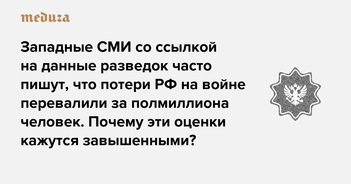 Западные СМИ со ссылкой на данные разведок часто пишут, что потери РФ на войне перевалили за полмиллиона человек. Почему эти оценки кажутся завышенными? Объясняем максимально коротко