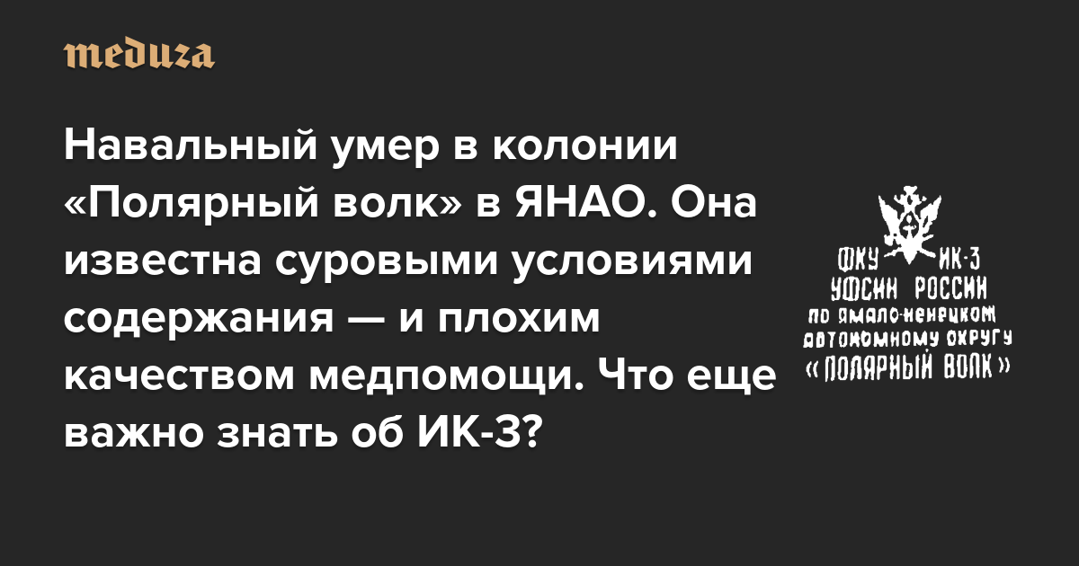 Навальный умер в колонии «Полярный волк» в ЯНАО. Она известна особо суровыми условиями содержания заключенных — и плохим качеством медицинской помощи. Что еще важно знать об этом месте?