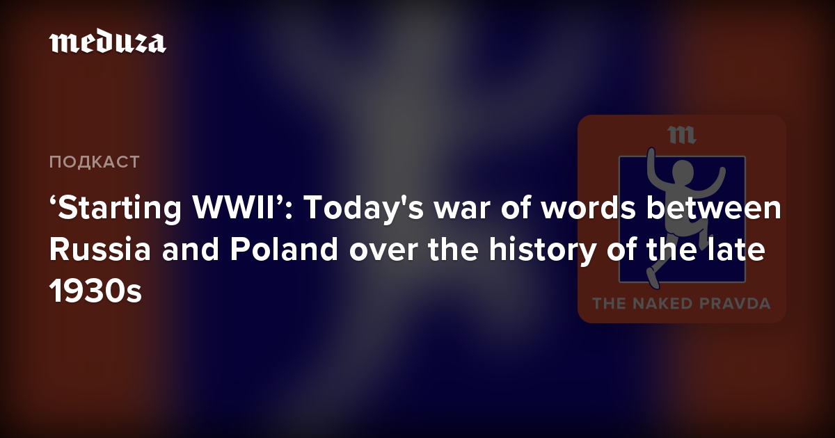 Earlier this month, Meduza published an article by Andrey Pertsev about President Vladimir Putin's shifting rhetoric when discussing the 1939 Soviet-Nazi nonaggression pact, as well as his growing criticism of Polish foreign policy in the year before the USSR cut a deal with Adolf Hitler. Despite being many decades old, these events remain hotly debated in Eastern Europe for obvious reasons: millions died in the conflict, which ended with Poland in the Soviet bloc for more than 40 years, and questions about blame and who only did “what was necessary” are still issues that offend and excite. That is undoubtedly why political elites today in both Russia and Poland often talk about the war, defending their own country's legacy against allegations from abroad.