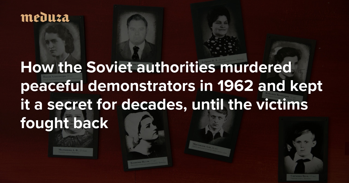 On June 2, 1962, Soviet soldiers fired on a demonstration by workers demanding better living conditions and lower prices. The shooting took place in downtown Novocherkassk, an industrial city near Rostov-on-Don. More than 25 people were killed, and more than 85 people were injured. For decades, the Soviet authorities kept the incident a secret, executing another seven demonstrators and sentencing another 100 participants to 10 years in prison. The truth about the Novocherkassk massacre only started leaking to the media during Perestroika, and a formal investigation didn’t occur until after the collapse of the USSR. Meduza special correspondent Daniil Turovsky visited Novocherkassk and met with people who have guarded the tragedy’s memory for 55 years. Turovsky also studied the criminal records, books, films, and archival documents related to the massacre, in order to retell the full history of the incident, from the terrible events on the day of the shooting to the efforts decades later to find the victims’ graves and bury their remains properly.