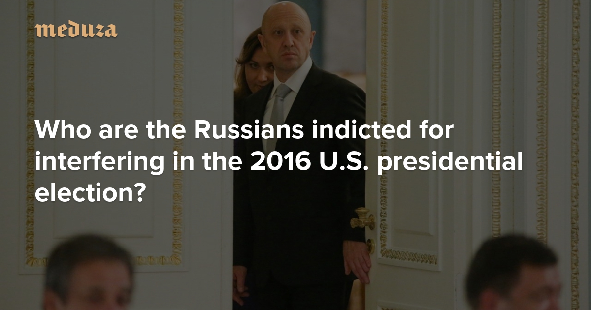 On February 16, the U.S. Justice Department indicted 13 Russian citizens for interfering in the 2016 presidential election. The most recognizable name on the list of Russians belongs to the catering magnate Evgeny Prigozhin, the general director of the “Internet Research Agency” (better known as “Russia’s troll factory”). The other 12 individuals singled out by the American grand jury are businessmen, translators, analysts, and office managers. They face charges of conspiracy to defraud the U.S., conspiracy to commit wire fraud and bank fraud, and aggravated identity theft. Some of these people have been linked to the “troll factory” in past investigative reports, while there’s almost nothing known about others on the list. Meduza looks at the specific charges against these dozen Russians and what we know about them.