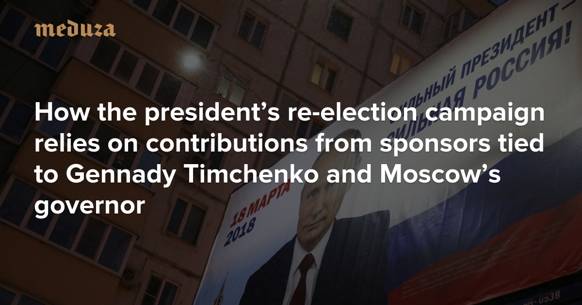 Russia’s next presidential election will take place on Sunday, March 18, and Vladimir Putin will win. As always, the incumbent president has refused to participate in any debates, but his campaign has been busy blanketing the country in billboards and other outdoor advertisements. This year, Putin’s sponsors aren’t individual people or companies, but the political party “United Russia” and a group of 22 affiliated nonprofits. Meduza presents an investigation by Roman Shleynov, a regional editor at the Organized Crime and Corruption Reporting Project (OCCRP), about the organizations sponsoring Putin’s re-election campaign and what they have in common with Moscow Governor Andrey Vorobyev, entrepreneur Gennady Timchenko, and the relatives of several high-ranking state officials and politicians.