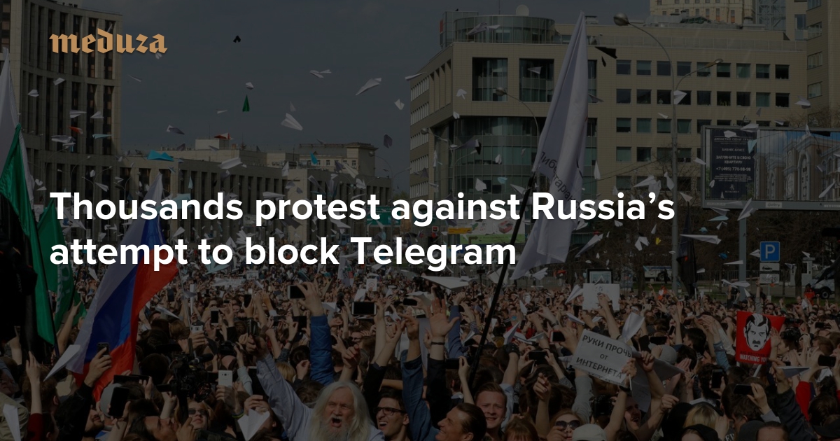 Self-proclaimed supporters of Internet freedom and the instant messenger Telegram assembled and dispersed at Sakharov Prospekt in Moscow on April 30. Organized by Russia’s Libertarian Party and the Internet Protection Society, the demonstration lasted about two hours. One volunteer organization estimates that roughly 12,000 people attended the rally. Moscow’s police department says about 7,500 turned out. Meduza reports from on the ground in Russia’s capital.