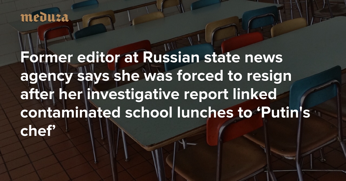 Former editor at Russian state news agency says she was forced to resign after her investigative report linked contaminated school lunches to ‘Putin’s chef’