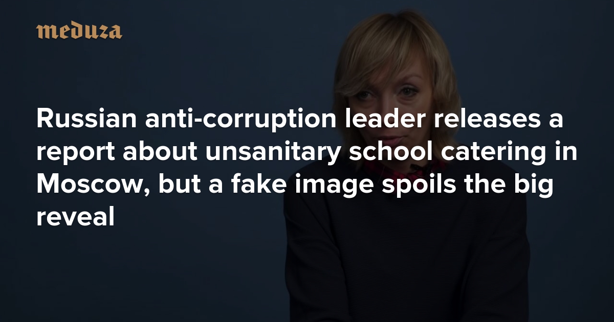 Russian anti-corruption leader releases a report about unsanitary school catering in Moscow, but a fake image spoils the big reveal