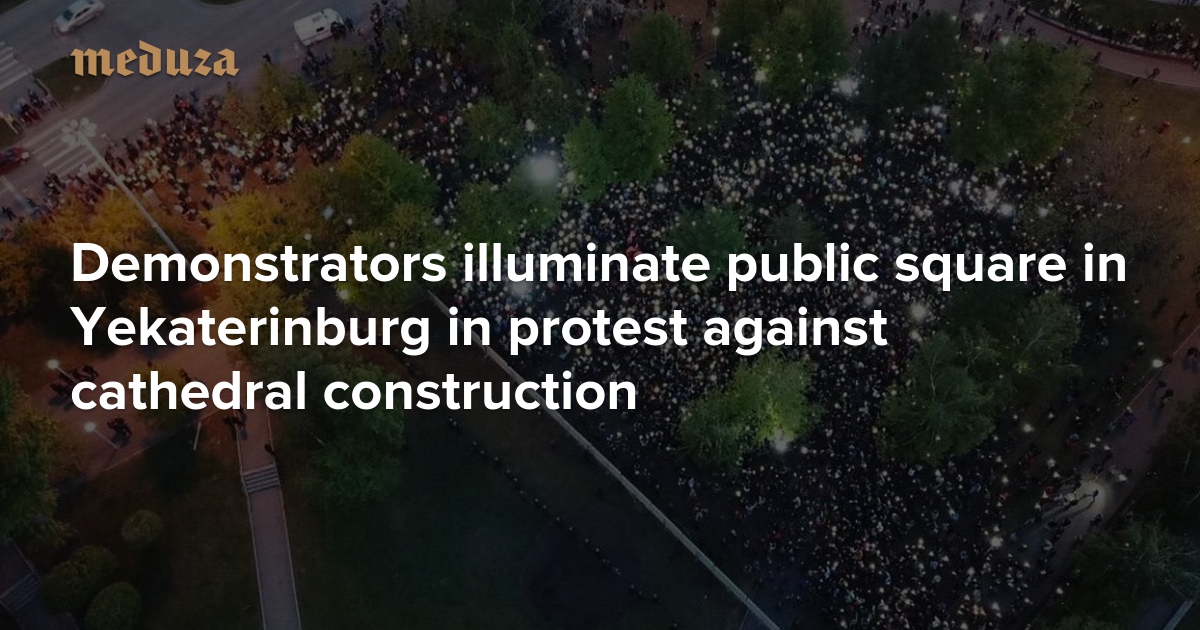 Fireworks, flares, and a thousand lights Demonstrators illuminate public square in Yekaterinburg in protest against cathedral construction
