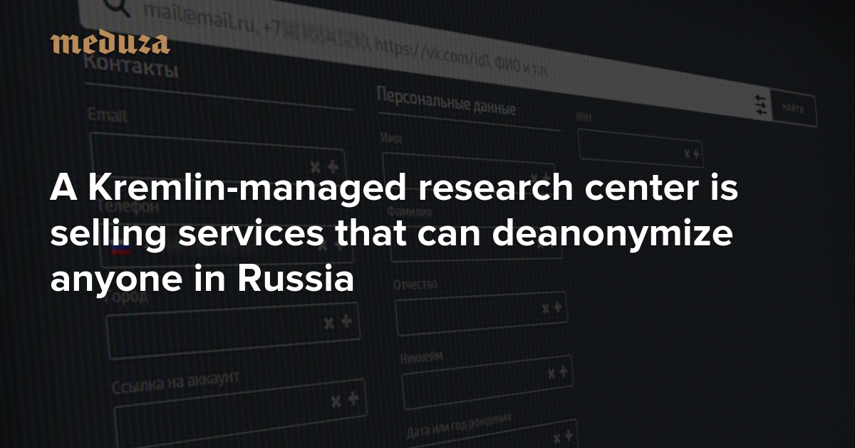 The information nation A Kremlin-managed research center is selling services that can deanonymize anyone in Russia