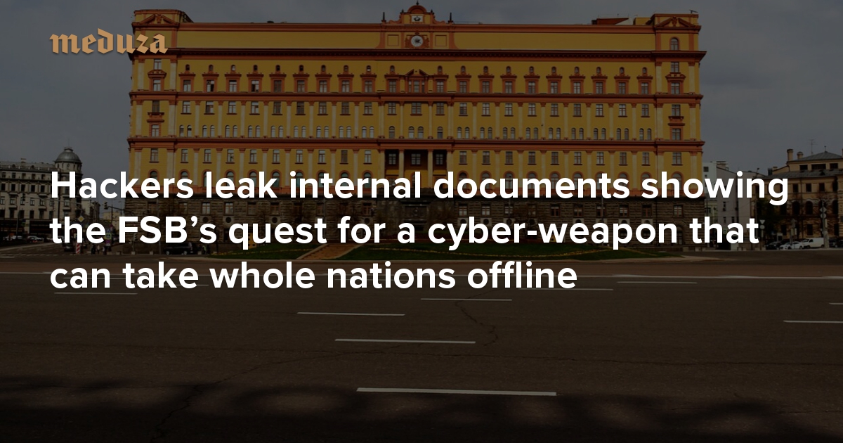 Russia’s Internet knockout punch Hackers leak internal documents showing the FSB’s quest for a cyber-weapon that can take whole nations offline