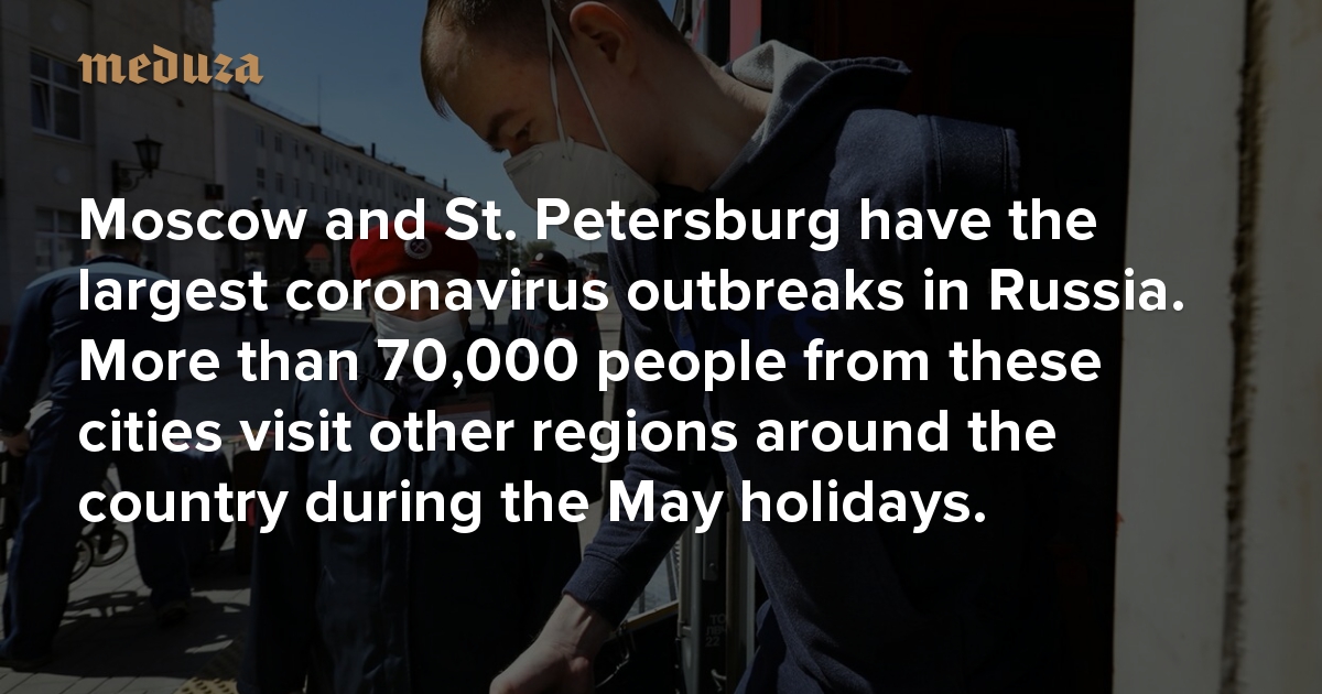 Infectious vacationers Moscow and St. Petersburg have the largest coronavirus outbreaks in Russia. More than 70,000 people from these cities visit other regions around the country during the May holidays.