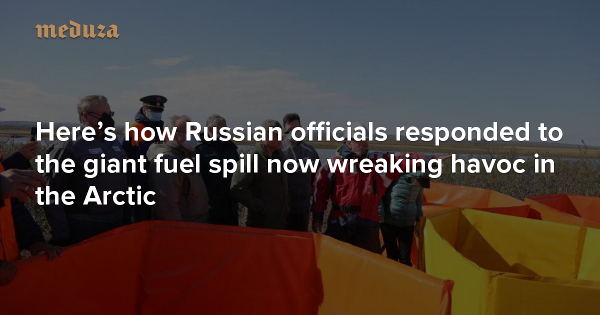On May 29, there was an accident at the Norilsk-Taimyr Energy Company’s Heat and Power Plant Number 3 (the energy company is a subsidiary of Norilsk Nickel, the world’s largest industrial producer of nickel and palladium). The depressurization of a massive fuel storage tank resulted in more than 20,000 tons of diesel fuel leaking into the surrounding soil and an adjacent river. Almost all of the river’s tributaries were filled with petrochemicals, with the amount of spillage exceeding the maximum level of permissible concentrations “many thousands of times,” said Svetlana Radionova, the head of Russia’s regulatory agency for natural resources, Rosprirodnadzor. Radionova’s comments came five days after the accident, during a video conference with President Vladimir Putin and other Russian officials on June 3. That same evening, federal authorities announced a state of emergency in Krasnoyarsk Krai. Emergency cleanup workers are now working to pump fuel out of the region’s Ambarnaya River, while investigators try to figure out who is to blame for news of the accident reaching Moscow so late. Meduza breaks down what happened in the immediate aftermath of the accident and why the cleanup is so problematic.