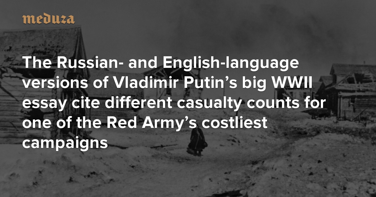 Meduza has discovered that not even Putin’s figures for the Battles of Rzhev are without problems. The two versions of the president’s essay — the English-language text published in The National Interest and the Russian-language text that appeared in Rossiyskaya Gazeta — cite different Soviet losses in this fighting: 1,154,698 people (The National Interest, archived copy) versus 1,342,888 people (Rossiyskaya Gazeta, archived copy).