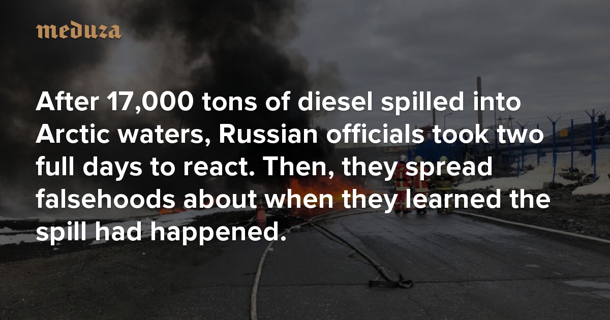 On May 29, 17,000 tons of diesel fuel spilled out of a faulty tank in the northern Siberian city of Norilsk, flooding the surrounding waterways with a red slick easily visible by satellite. The tank was part of the Norilsk-Taimyr Energy Company’s Thermal Power Plant No. 3, whose parent firm, Norilsk Nickel, is known for its connections to other ecological disasters. According to Nornickel, the latest spill stemmed from melting permafrost underneath the corroding tank; northern Siberia is currently undergoing a major heat wave. Officials estimate that cleaning the Norilsk spill will take at least half a year, while the environment surrounding the city will take at least a decade to recover as the climate crisis continues to take its toll. Amid that recovery, one key question is why government officials learned about and acted on the historic spill days after it happened. Meduza special correspondents Maxim Solopov and Anastasia Yakoreva reconstructed the initial response to the Norilsk disaster using internal documents from the Emergencies Ministry and interviews with government employees.