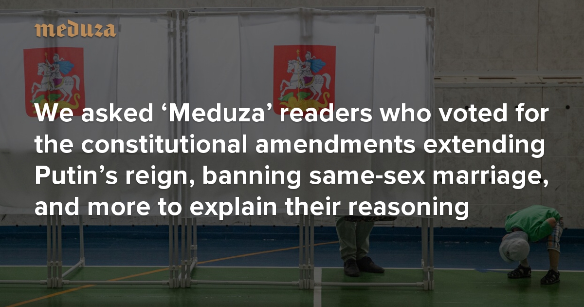 Why they voted yes We asked ‘Meduza’ readers who voted for the constitutional amendments extending Putin’s reign, banning same-sex marriage, and more to explain their reasoning