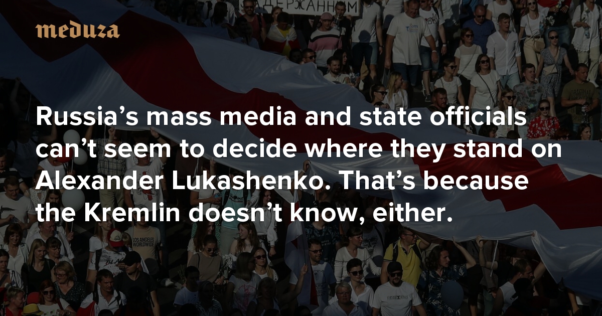 A source close to the Putin administration explained to Meduza that the relatively free rein granted now to Russia’s state media on Belarus reporting is possible when there’s no consensus in the Kremlin about events or even the most “desirable scenario” worth promoting. “They’re just waiting to see if [Lukashenko] holds on,” said another source with ties to the Kremlin.