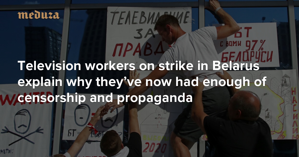 Protests and walkouts continue across Belarus in the wake of contested presidential election results. Staff at Belarus’ state-owned TV stations are striking, too. They protest at studios and newsrooms, demanding unbiased coverage of opposition demonstrations and the ensuing violence inflicted by law enforcement. Some seasoned journalists have already resigned. Meduza spoke with the striking workers about their demands and about censorship on the Belarusian airwaves.