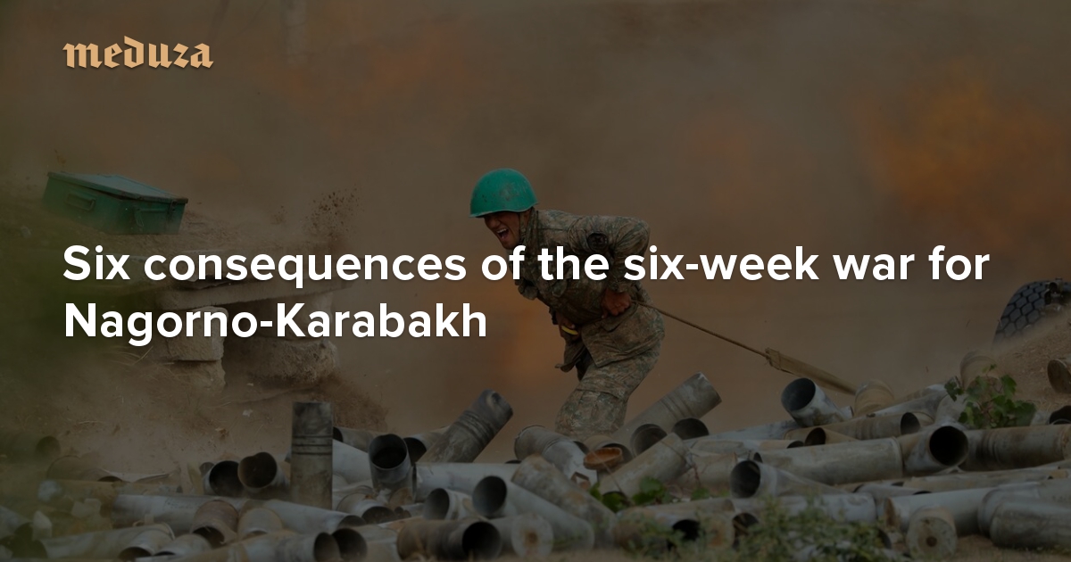 Russia’s peacekeeping mission in Nagorno-Karabakh, the ethnically Armenian breakaway region of Azerbaijan where thousands of civilians and soldiers have died in recent weeks of fighting, has released a map detailing the operation ahead, clarifying many of the territorial ambiguities of the truce between Yerevan and Baku announced on November 10. Judging by the map, the situation in Karabakh will revert mostly to the conditions in place before the first modern war between Armenia and Azerbaijan in 1991: Azerbaijan will deploy artillery to the hills of Shusha, just a few miles from Karabakh’s capital city of Stepanakert, and the breakaway republic itself will be cut off essentially from Armenia. The safety of the region’s ethnic Armenians remains in question, given that the presence of Russian peacekeepers is guaranteed for only five years. Additionally, for the first time in history, Baku has gained a ground corridor to its western exclave in the Nakhchivan Autonomous Republic. Many political questions in Nagorno-Karabakh nevertheless remain unanswered. Meduza reviews the six-week war and tries to explain who won the most: Azerbaijan, Russia, or Turkey?