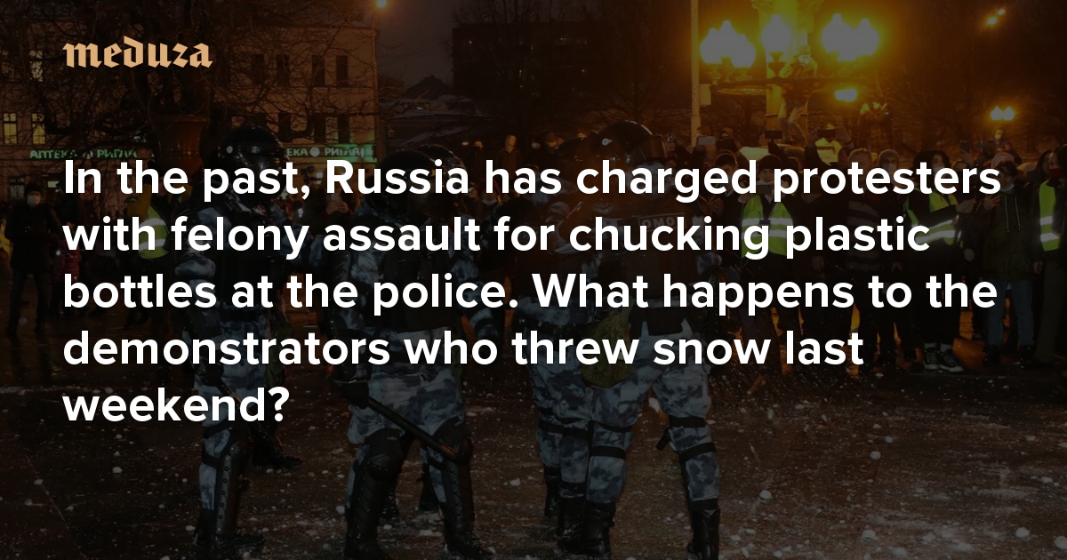 It’s raining snowballs In the past, Russia has charged protesters with felony assault for chucking plastic bottles at the police. What happens to the demonstrators who threw snow last weekend?