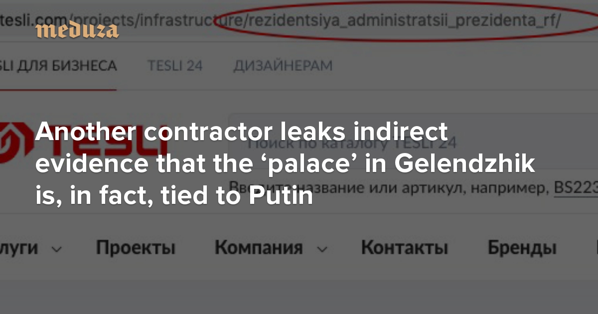 Tesli is now the fifth contractor that has indirectly verified that the lavish mansion under construction in Gelendzhik is related to President Vladimir Putin.