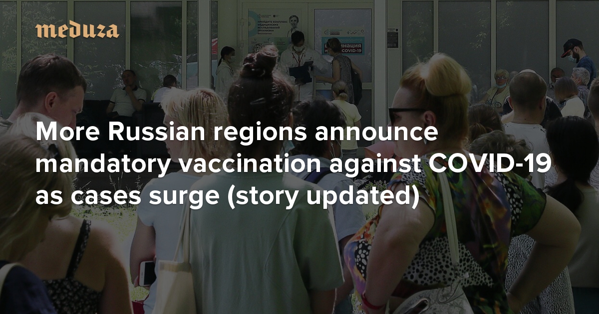 Against the backdrop of a spike in coronavirus cases, a number of Russian regions have begun to introduce mandatory vaccination in some form or another. Most of these campaigns target people working in the service, trade, healthcare, transport, and culture industries, as well as public officials. Many regions are aiming to vaccinate at least 60 percent of these workers against COVID-19 over the next few months or weeks. Meanwhile, on June 16, President Vladimir Putin’s spokesman told reporters that there are no plans to introduce mandatory vaccination at the national level. Here are the Russian regions that have announced mandatory vaccination campaigns so far (This list was first published on June 22, but Meduza has continued to update it. The last update was on July 27).