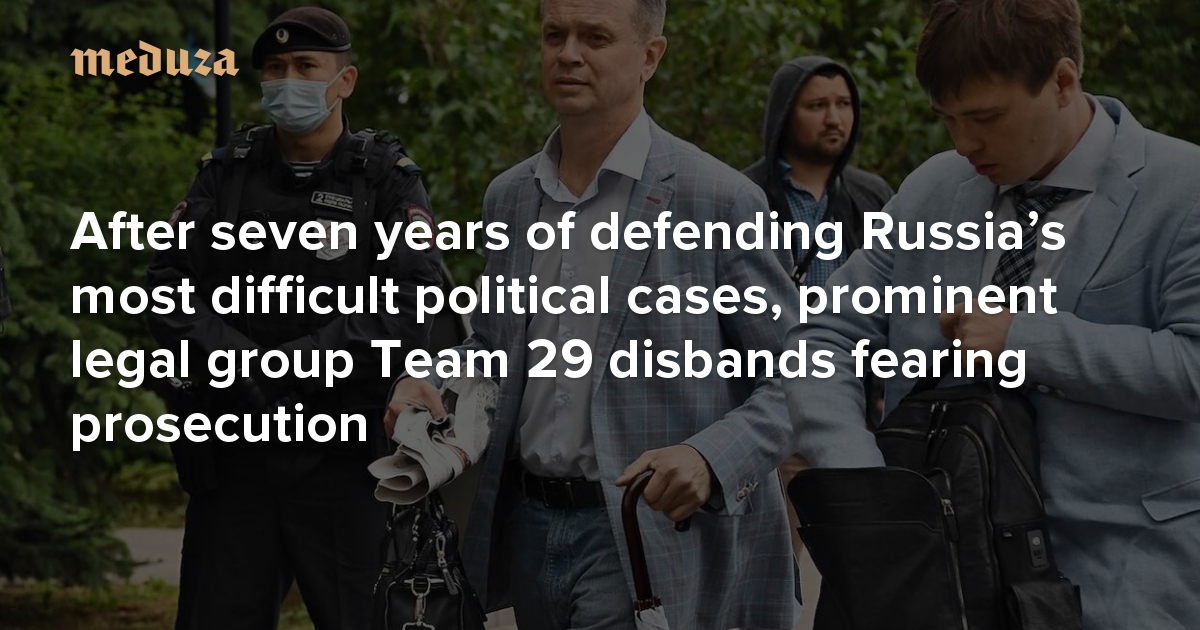After nearly seven years of taking on some of Russia’s most difficult political prosecutions, the association of lawyers, attorneys, and journalists known as Team 29 announced its dissolution on July 18. “We’re making the difficult decision to cease the activities of Team 29. Lawyers and attorneys will continue to work on their clients’ cases exclusively in a personal capacity, if their clients do not refuse their help in the current situation,” the legal group said in a statement published on Telegram.