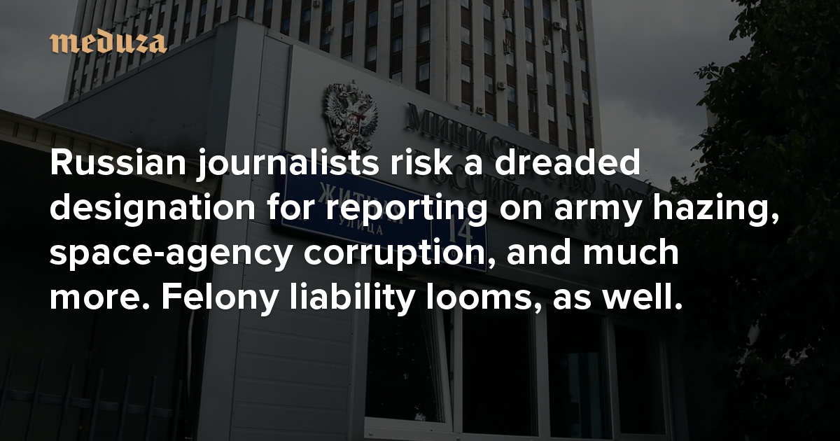 A new kind of ‘foreign agent’ Russian journalists risk a dreaded designation for reporting on army hazing, space-agency corruption, and much more. Felony liability looms, as well.