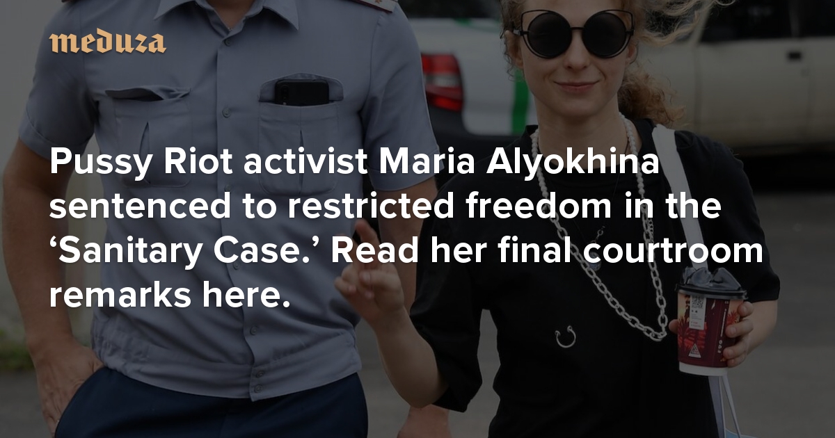 On Friday, September 10, a Moscow court sentenced prominent Pussy Riot activist Maria Alyokhina to one year of “restrictions on freedom” (a parole-like sentence). As part of the “Sanitary Case,” the court found her guilty of inciting violations of pandemic-related restrictions and, consequently, creating the threat of a mass coronavirus outbreak. State prosecutors sought two years of restricted freedom for Alyokhina, who has been shuffled from house arrest to pre-trial detention since the launch of the “Sanitary Case” in late January. Meduza shares a full English-language translation of Maria Alyokhina’s final courtroom remarks here.