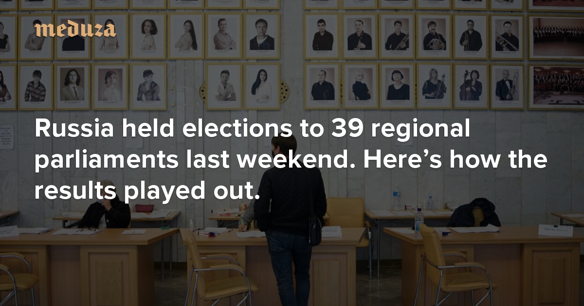 Elections to local parliaments took place in 39 Russian regions last weekend (September 17–19), at the same time as the elections to the State Duma. In a new report, RBC breaks down how the voting results in these regions changed since the last elections in 2016. Though United Russia won the most votes in all 39 regional parliamentary elections, its victory wasn’t as resounding as it was five years ago. By comparison, the Communist Party (KPRF) saw better results at the polls in 34 of the 39 regions. Meduza summarizes the regional election results for each of Russia’s main political parties here.
