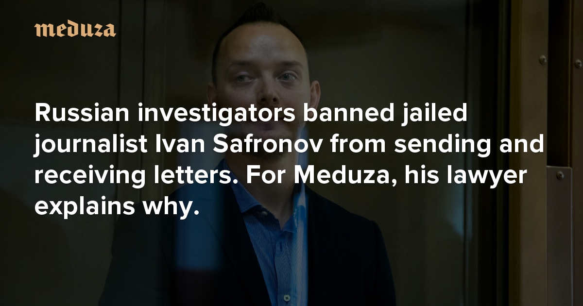 ‘The investigation is very afraid’ Russian investigators banned jailed journalist Ivan Safronov from sending and receiving letters. For Meduza, his lawyer explains why.