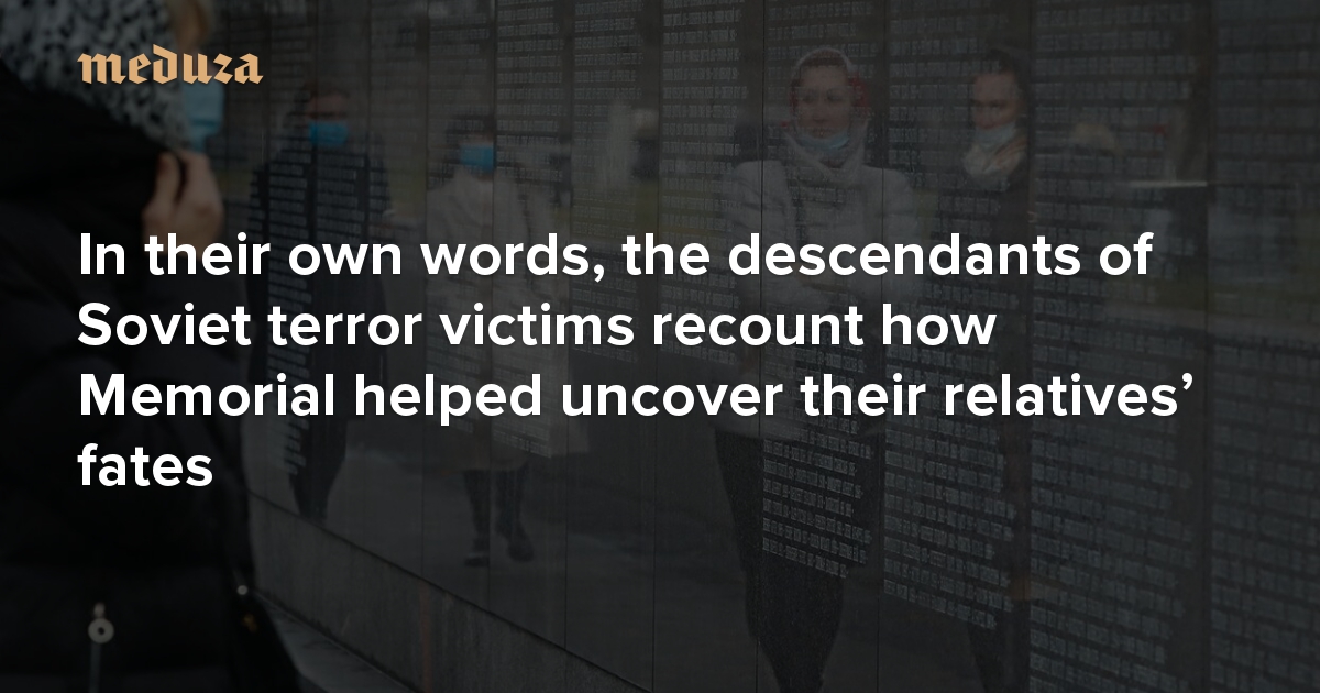 Russia’s oldest human rights organization, Memorial International, is under threat. Last week, prosecutors filed a lawsuit with the Supreme Court seeking to shut down Memorial over “systematic violations” of Russia’s legislation on “foreign agents.” One of Memorial’s greatest projects is a database of victims of the USSR’s political terror, a resource that has connected countless people with information about their relatives lost to the purges. In their own words, the descendants of Soviet terror victims recount how Memorial helped them uncover their family histories and share their thoughts on the authorities going after the rights group.