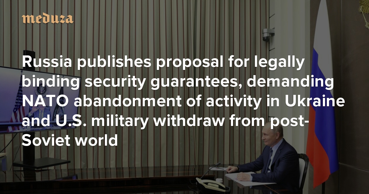 Moscow’s terms Russia publishes proposal for legally binding security guarantees, demanding NATO abandonment of activity in Ukraine and U.S. military withdraw from post-Soviet world
